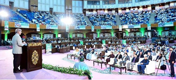 Prime Minister Muhammad Shehbaz Sharif addressing the launching ceremony of the National Program for Solarization of Agricultural Tubewells