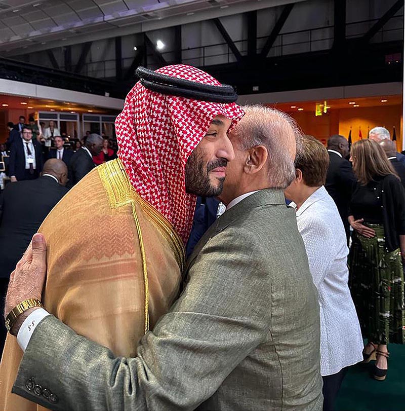 Prime Minister Muhammad Shehbaz Sharif meets Crown Prince and Prime Minister of the Kingdom of Saudi Arabia on the sidelines of New Global Financial Pact Summit being held in France