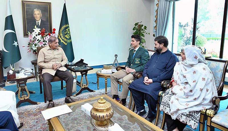 Prime Minister Muhammad Shehbaz Sharif received Hamza Khan, winner of the World Junior Squash Championship alongwith his parents in the Prime Minister’s House