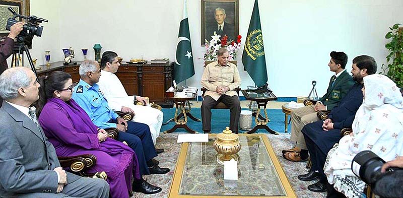 Prime Minister Muhammad Shehbaz Sharif received Hamza Khan, winner of the World Junior Squash Championship alongwith his parents in the Prime Minister’s House