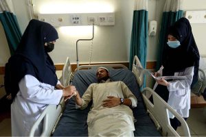Nursing staff attend to a patient as part of their duties on International Nurses Day at Lady Reading Hospital