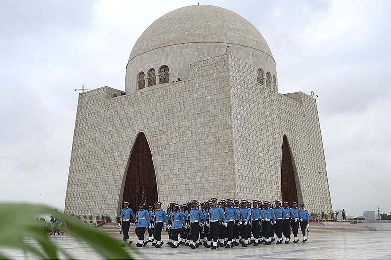 KARACHI: September 06 – Pakistan Air Force cadets demonstrate March Past at mausoleum of Quaid-e-Azam Muhammad Ali Jinnah on the occasion of Defence Day celebrated across the country. APP/SDQ/MAF/TZD/ABB