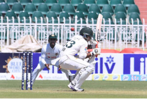 RAWALPINDI: August 31 – Pakistan batter Saim Ayub escapes of a bouncing ball during the second day of the last cricket Test match playing between Pakistan and Bangladesh at Pindi Cricket Stadium. APP/ADZ/ABB