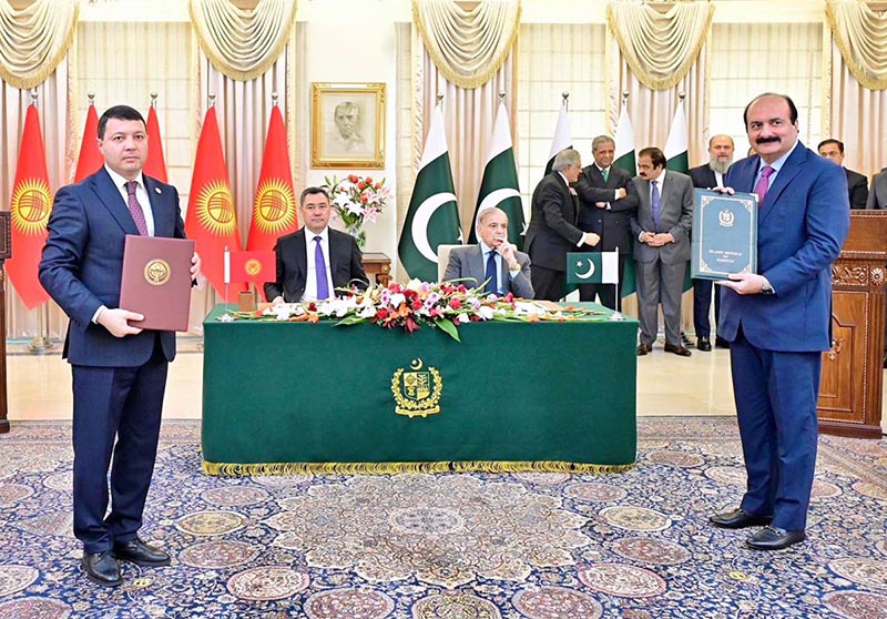 APP23-041225 ISLAMABAD: December 04 – APP24-041225 ISLAMABAD: December 04 – Pakistani Federal Minister exchange MoU with his Kyrgyz counterpart at the ceremony of exchange of MoUs between Pakistan and Kyrgyzstan in various sectors. APP/MAF/TZD
