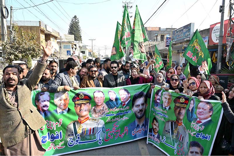 Parliamentary Secretary for Information and Broadcasting, Barrister Danyal Chaudhry leads a rally in support of the Pakistan Army in the Gulraiz Scheme-III area of the twin cities
