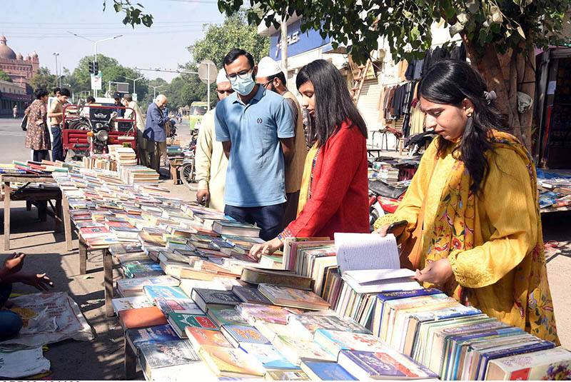 People busy in selecting and purchasing old books from roadside setup in Provincial Capital