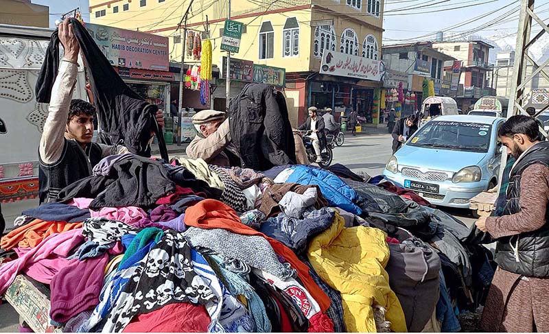 People busy in selecting and purchasing second hand jackets from the roadside vendor