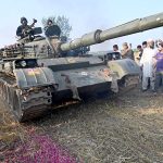 People distributing sweets on the success of Operation Bunyan-un-Marsus against Indian aggression in a rally at Hyder Chowk.