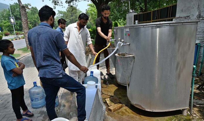 People filling their pots with clean drinking water from filtration plant at F-6 in the Federal Capital