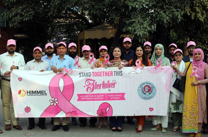 People from various fields participating in a breast cancer awareness campaign organized by the Lahore Press Club in collaboration with Himmel Pharmaceuticals.