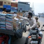 BAHAWALPUR: July 21 – People load motorcycles and other equipment onto boats to cross the Sutlej River in the Nawahi area. APP/HBR/MAF/FHA