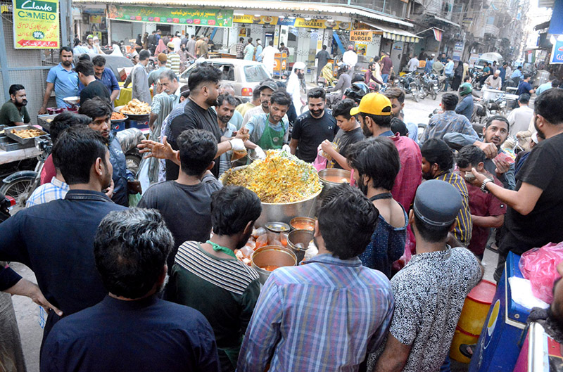 KARACHI: March 20 – People rush to buy snacks for Iftari at Burns Road. APP/SDQ/ABB