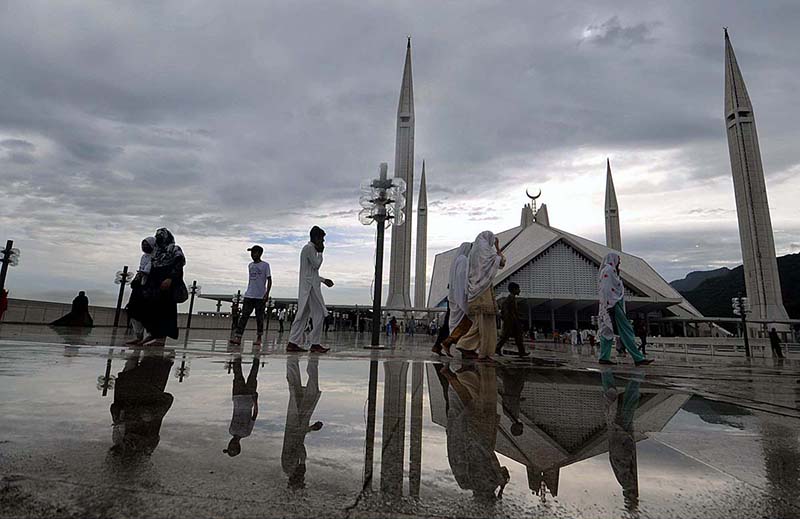 ISLAMABAD: July 19 – A large number of people visiting Shah Faisal Masjid in a pleasant weather after heavy rain that experienced at morning time in the city. APP/IFD/MAF/TZD/ABB