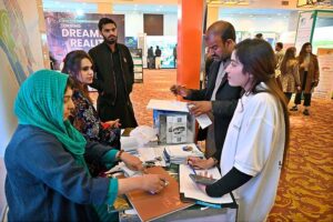 ISLAMABAD: December 17 – People visiting stalls during 3rd Pakistan International Property Housing and Construction EXPO 2023 organized by Pakistan Association of Exhibition Industry (PAEL) at Pak China Friendship Centre. APP/SAK/TZD/FHA