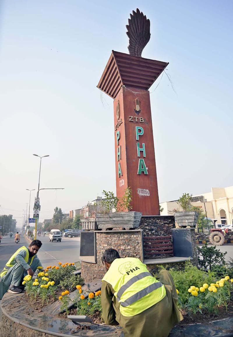 PHA staffer planting flowers at GPO Chowk. APP36-051124SARGODHA: November 05 – Previous Post Power Suspension on Peshawar, Nowshera, Kohat feeders notified Next Post CM Murad launches modern Counter-Terrorism Fusion Centre