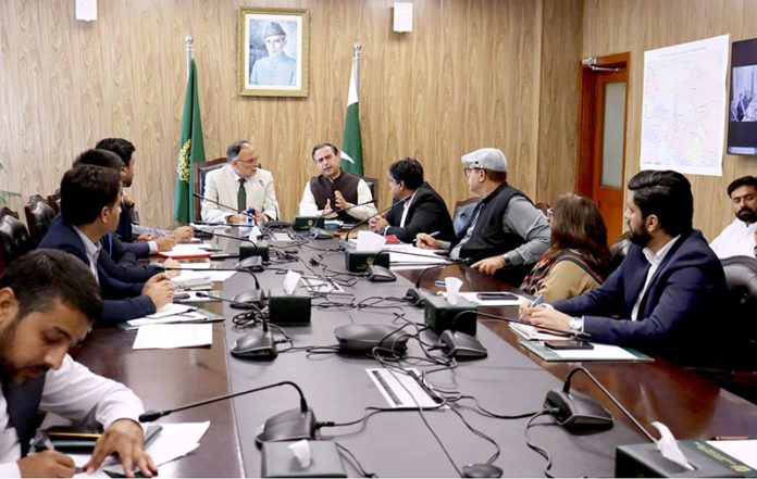 Planning Minister Ahsan Iqbal chairs a meeting to review progress of Karachi Coastal Comprehensive Development Zone. Federal Minister for Maritime Affairs, Muhammad Junaid Anwar Chaudhry is also present