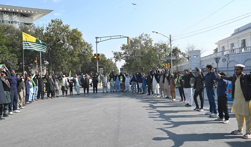 PML-N and other party activists making a human-chain of hands to express solidarity with Kashmiris as a part of Kashmir Solidarity Day at Faisal Chowk.
