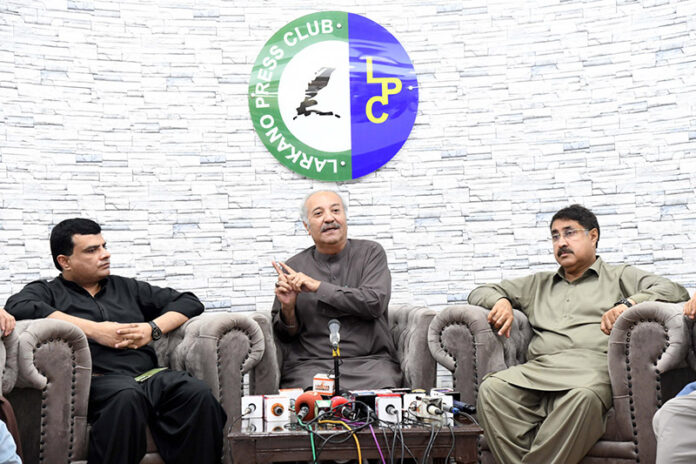 LARKANAPolitical Secretary to PPP Chairman, MPA Jameel Ahmed Soomro addressing a press conference regarding the 46th martyrdom anniversary of Shaheed Zulfiqar Ali Bhutto at Press Club