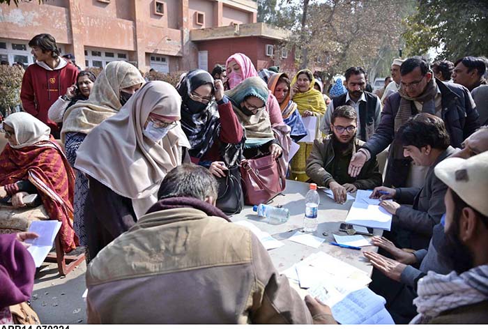SARGODHA: February 07 – Polling staff on the way after receiving polling material at distribution Centre for General Elections 2024.