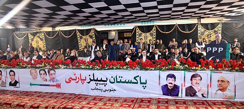 President Asif Ali Zardari addresses a public gathering at the residence of President PPP South Punjab Makhdoom Ahmed Mahmood