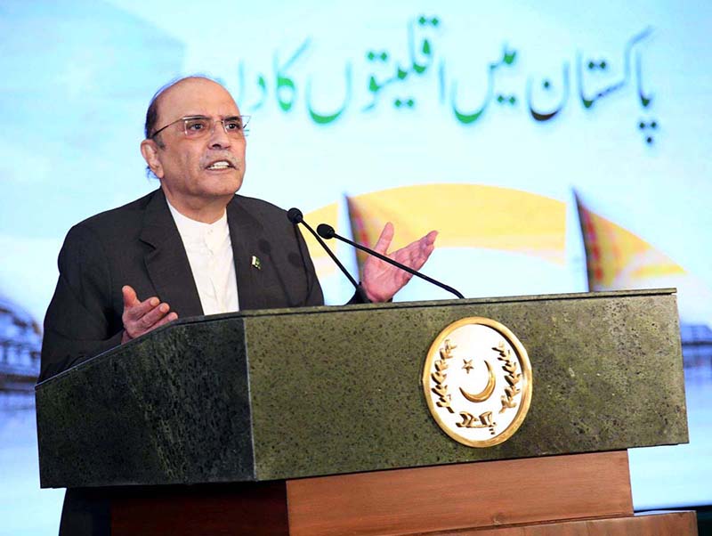 ISLAMABAD: August 12 – President Asif Ali Zardari addressing a ceremony in connection with Minorities’ Day in Pakistan, at Aiwan-e-Sadr.
