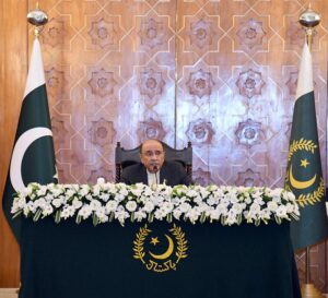 President Asif Ali Zardari addressing the participants of the 5th International Workshop for Leadership & Stability organized by the National Defence University (NDU), at Aiwan-e-Sadr.