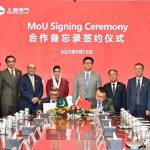 President Asif Ali Zardari, along with First Lady Bibi Aseefa Bhutto Zardari, Chairman PPP Bilawal Bhutto Zardari, Senator Saleem Mandviwalla, Sindh Minister for Information & Transport Sharjeel Inam Memon, and Sindh Minister for P&D and Energy Syed Nasir Hussain Shah, attending a briefing at Shanghai Electric.