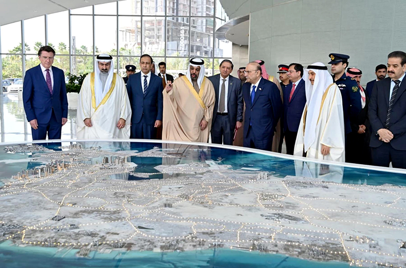 President Asif Ali Zardari being briefed by the Economic Development Board of Bahrain, in the presence of Deputy Prime Minister of Bahrain Shaikh Khalid bin Abdulla Al Khalifa