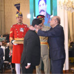 President Asif Ali Zardari conferring the award of Sitara-i-Quaid-i-Azam upon Dr Christine Brunhilde Margarete Schmotzer in recognition of her services to Pakistan, at the investiture ceremony to confer the insignias of Civil Awards, at Aiwan-e-Sadr.