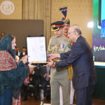 President Asif Ali Zardari conferring the award of Tamgha-i-Imtiaz upon Dr Sarah Qureshi in recognition of her public services in Engineering and Aerospace, at the investiture ceremony to confer the insignias of Civil Awards, at Aiwan-e-Sadr. APP42-230325ISLAMABAD: March 23 – Previous Post President Asif Ali Zardari conferring the award of Nishan-i-Imtiaz (posthumous) upon Air Marshall (r) Raja Shahid Hamid (late) in recognition of his public services, at the investiture ceremony to confer the insignias of Civil Awards, at Aiwan-e-Sadr. Next Post President Asif Ali Zardari conferring the award of Hilal -i-Shuja’at (posthumous) upon SP Muhammad Ijaz Shaheed in recognition of his gallantry, at the investiture ceremony to confer the insignias of Civil Awards, at Aiwan-e-Sadr. His award is being received by his daughter