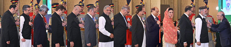 President Asif Ali Zardari conferring the awards of Tamgha-i-Imtiaz during the investiture ceremony to confer the insignias of civil awards, at Aiwan-e-Sadr.