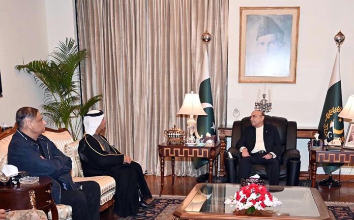 President Asif Ali Zardari in a meeting with Ambassador of the United Arab Emirates to Pakistan, Mr Salem Mohammed Salem Al Bawab Al Zaabi, at Aiwan-e-Sadr.