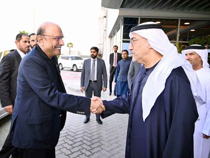 President Asif Ali Zardari is seen off by His Excellency Abdul Rahman bin Mohamed Al Owais, Cabinet Member and Minister for Federal National Council Affairs of UAE, at the airport.