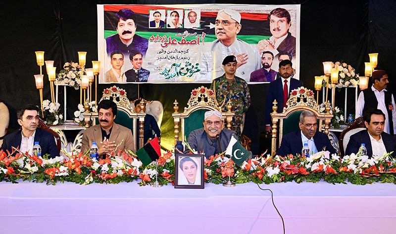 President Asif Ali Zardari meeting PPP leadership from South Punjab, at the residence of President PPP South Punjab Makhdoom Ahmed Mahmood