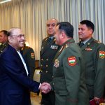 President Asif Ali Zardari presenting a souvenir to Colonel General Sabirzoda Emomali Abdulrahim, Defence Minister of Tajikistan, at Aiwan-e-Sadr.