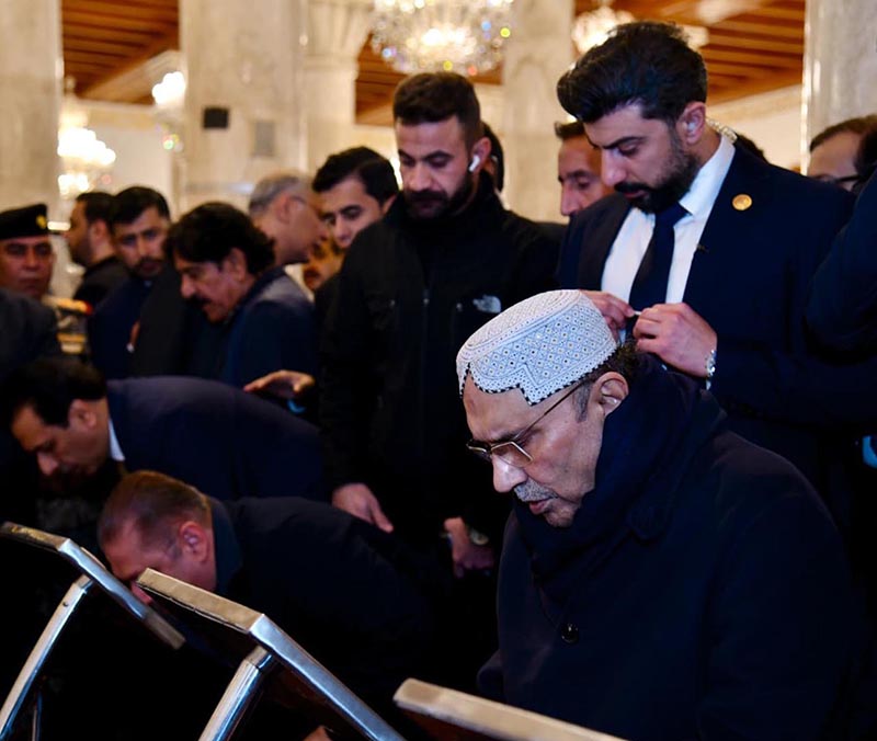 President Asif Ali Zardari visited Masjid-e-Kufa, offered nawafil prayers and paid respects at the house attributed to Hazrat Ali (R.A.).