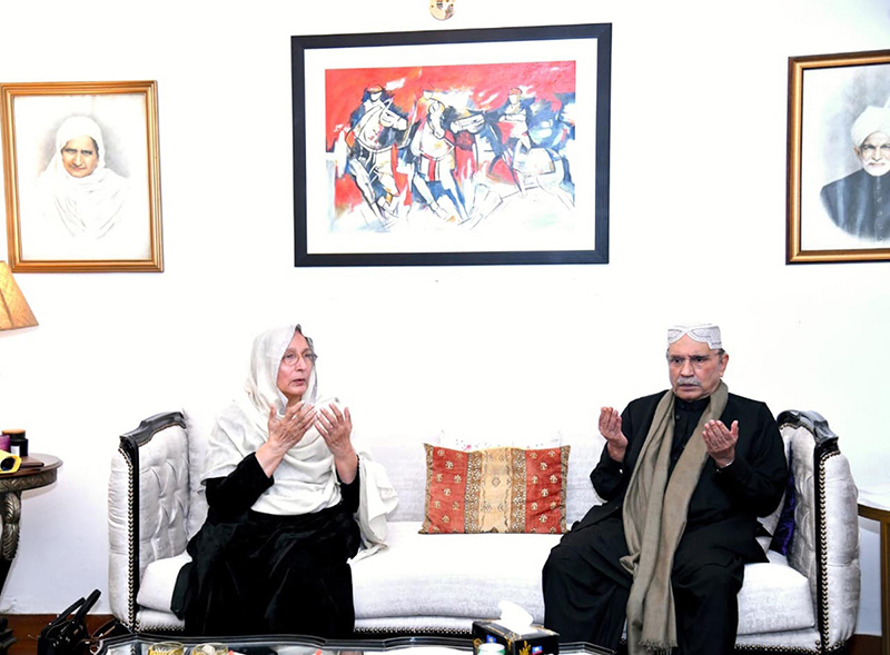 President Asif Ali Zardari visits the residence of the late Mian Manzoor Ahmed Wattoo to offer Fatiha and express his condolences to Begum Perveen Wattoo and other members of the bereaved family