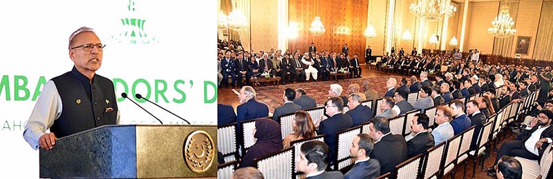 President Dr. Arif Alvi addressing the Annual Ambassadors’ Dinner, organized by the Lahore Chamber of Commerce & Industry, at Aiwan-e-Sadr.