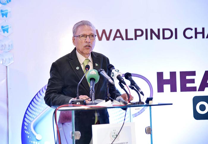 RAWALPINDI: February 20 – President Dr Arif Alvi addressing the National Health Summit on dental hygiene organized by the Rawalpindi Chamber of Commerce and Industry.