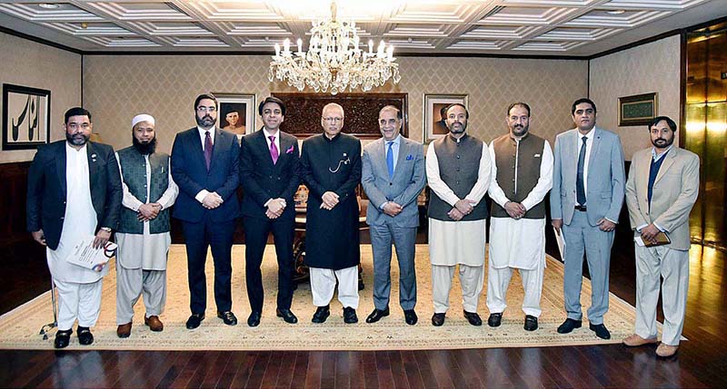 President Dr. Arif Alvi in a group photo with a delegation of Rawalpindi Chamber of Commerce and Industry, who called on him, at Aiwan-e-Sadr.