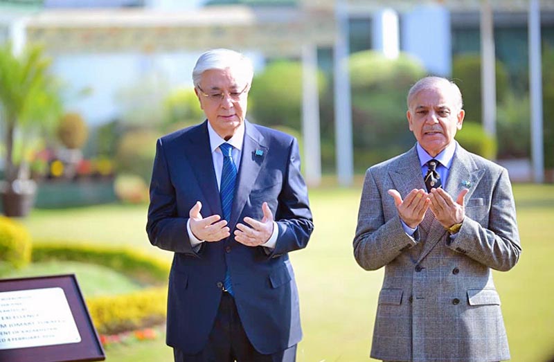 President of Kazakhstan Kassym-Jomart Tokayev offering dua after planting a sapling at Prime Minister’s House.
