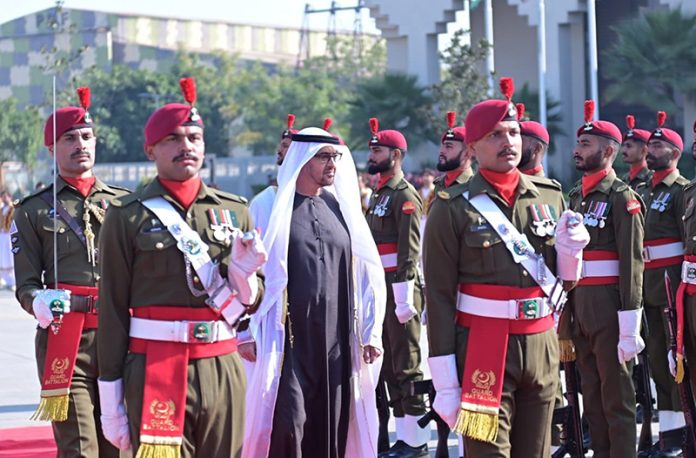 APP25-261225 RAWALPINDI: December 26 – APP26-261225 RAWALPINDI: December 26 – President of UAE, His Highness Sheikh Mohamed bin Zayed Al Nahyan is being presented Guard of Honour upon arrival at Noor Khan Airbase. APP/ABB