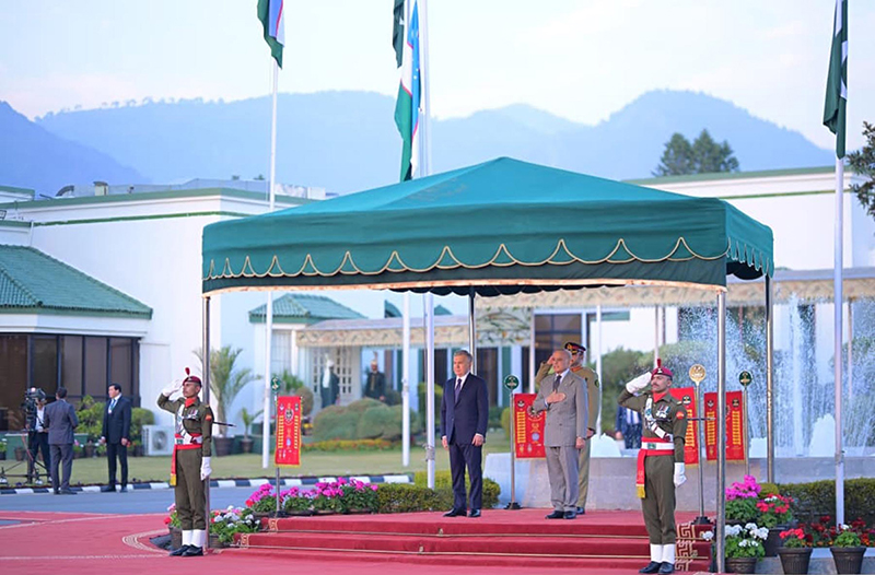 ISLAMABAD: February 05 – President of Uzbekistan Shavkat Mirziyoyev receives Guard of Honour at Prime Minister’s House. APP/ABB