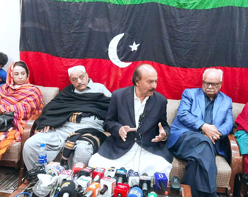 President PPP Sindh, Nisar Ahmad Khoro addressing to press conference
