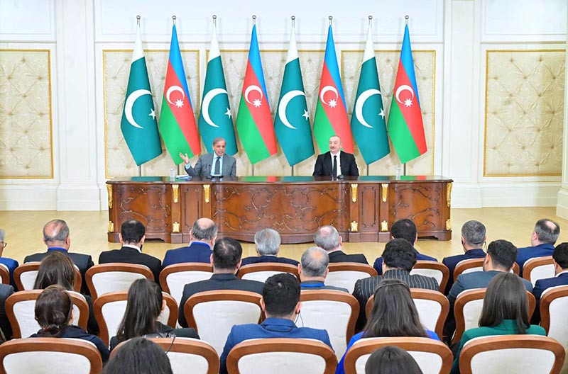 BAKU: February 24 – Prime Minister Muhammad Shehbaz Sharif addresses a joint press stakeout during his two day official visit to Azerbaijan.