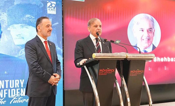 Prime Minister Muhammad Shehbaz Sharif addresses at a special ceremony on the occasion of 102nd Republic Day of Türkiye.