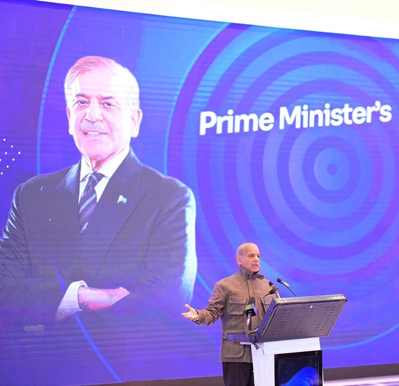 MUZAFFARABAD: December 24 - Prime Minister Muhammad Shehbaz Sharif addresses the ceremony of distribution of laptops among students in University of Azad Jammu and Kashmir. APP/MAF/ABB