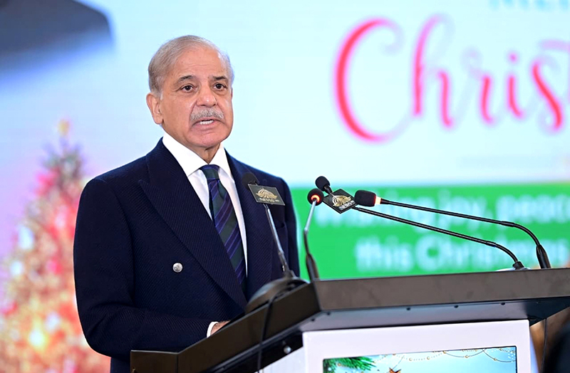 Prime Minister Muhammad Shehbaz Sharif addresses the Christmas ceremony at PM House.