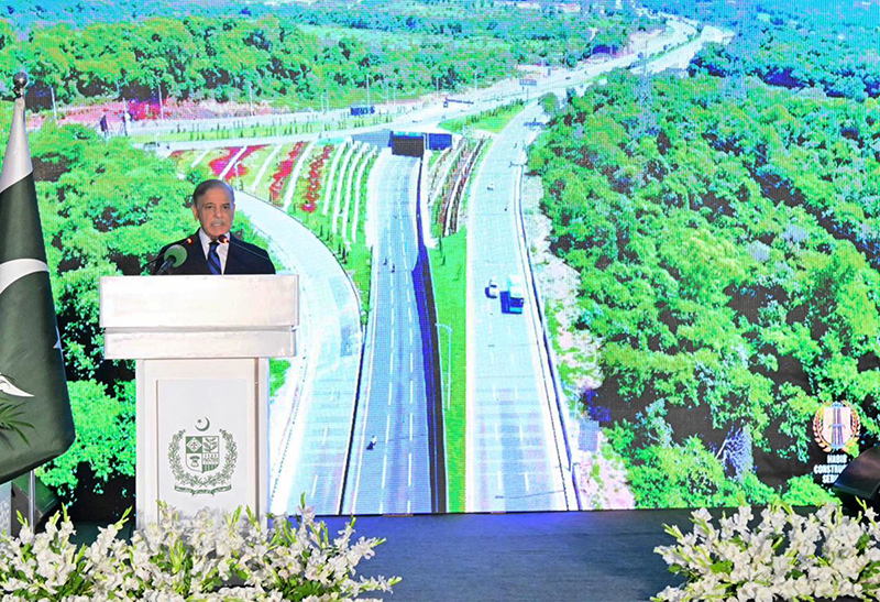 Prime Minister Muhammad Shehbaz Sharif addresses the ground breaking ceremony of Shaheen Chowk Interchange
