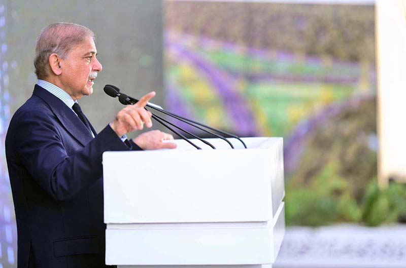Prime Minister Muhammad Shehbaz Sharif addresses the groundbreaking ceremony of Jinnah Square Murree Road Underpass.